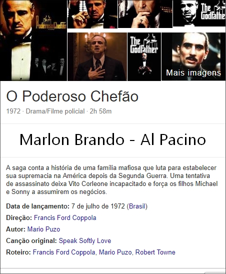 Elenco: Abe Vigoda, Marlon Brando, Al Pacino.